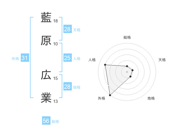 藍原 広業さんの外格は31画の5点!