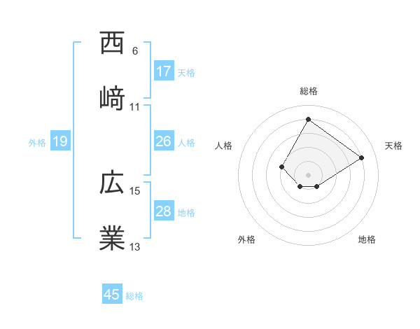 西﨑 広業さんを姓名の画数から五運を鑑定
