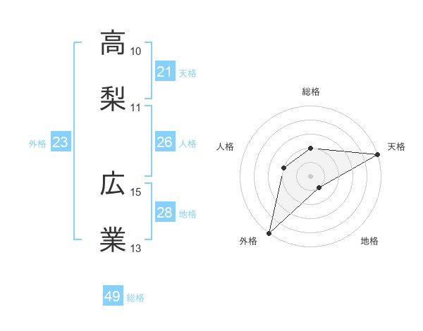 高梨 広業さんを姓名の画数から五運を鑑定