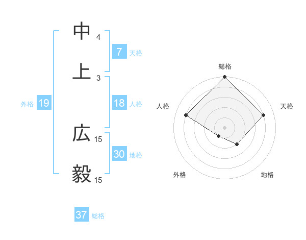中上 広毅さんの総格は37画の5点!