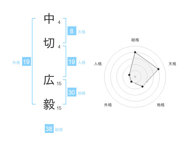 中切 広毅さんの総格は38画の4点!