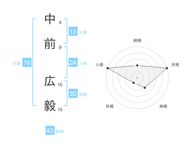 中前 広毅さんの天格は13画の5点!