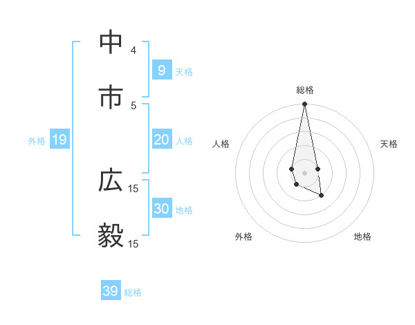 中市 広毅さんの総格は39画の5点!