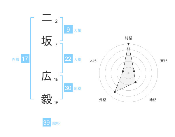 二坂 広毅さんの総格は39画の5点!