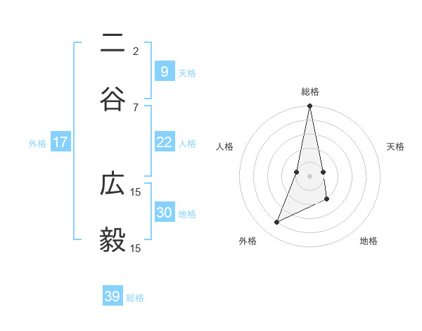 二谷 広毅さんの総格は39画の5点!