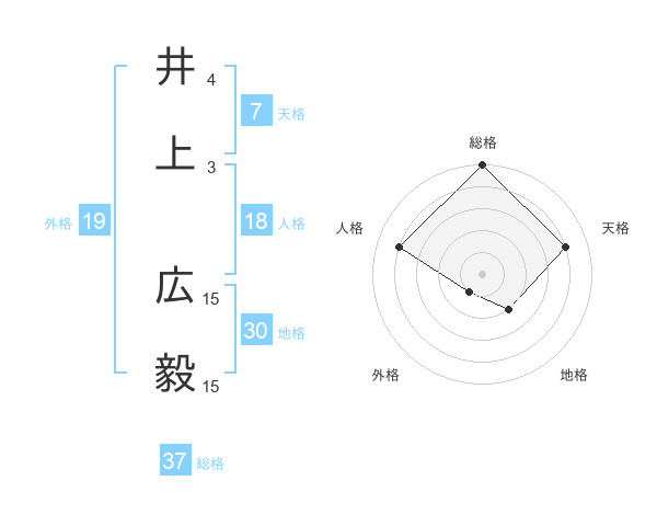 井上 広毅さんの総格は37画の5点!