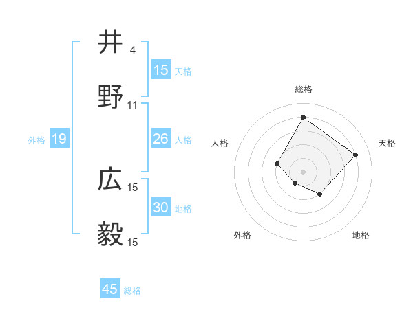 井野 広毅さんの総格は45画の4点!