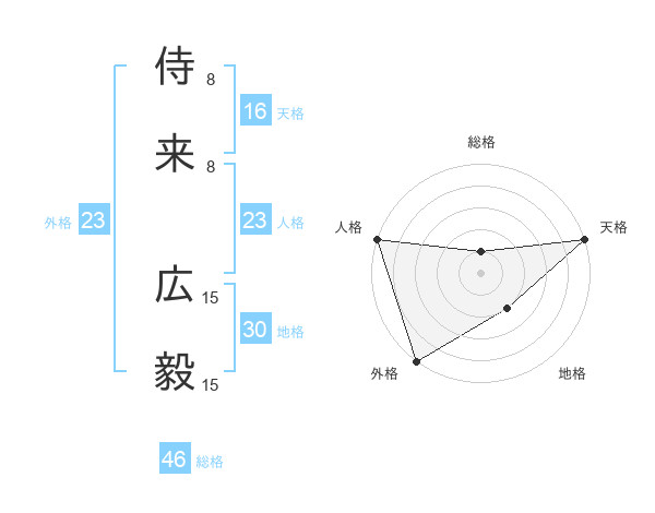 侍来 広毅さんの外格は23画の5点!