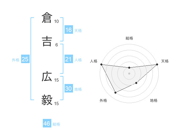 倉吉 広毅さんの天格は16画の5点!