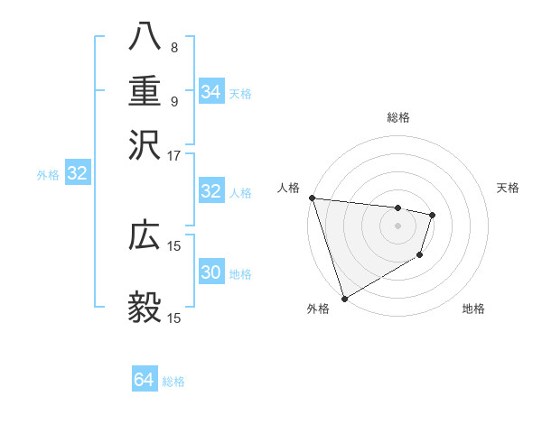 八重沢 広毅さんの総格は64画の1点!