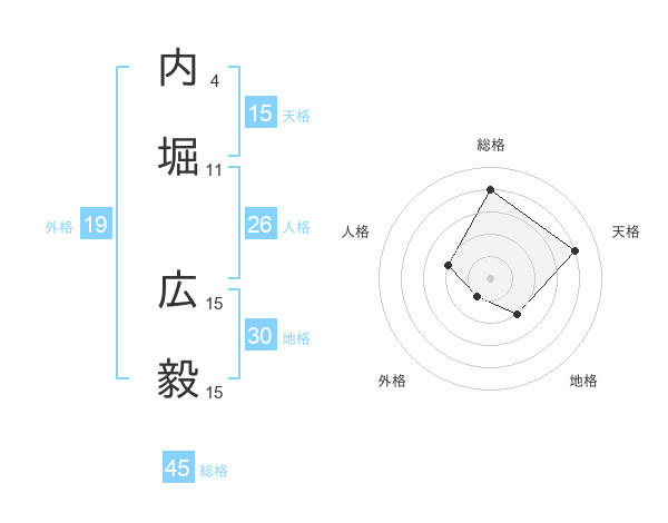 内堀 広毅さんの総格は45画の4点!