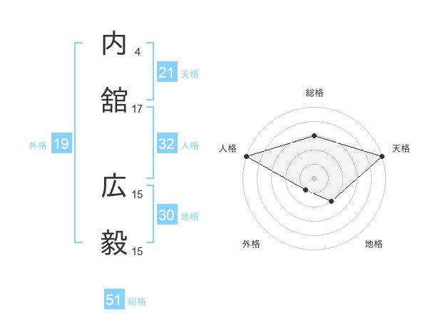 内舘 広毅さんを姓名の画数から五運を鑑定