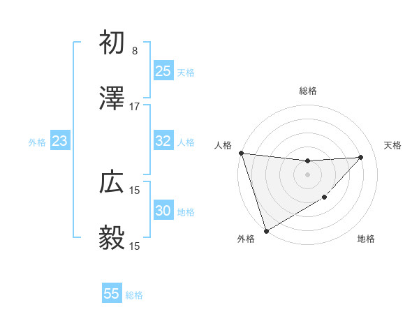 初澤 広毅さんを姓名の画数から五運を鑑定