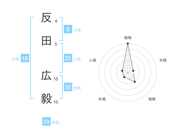 反田 広毅さんの総格は39画の5点!