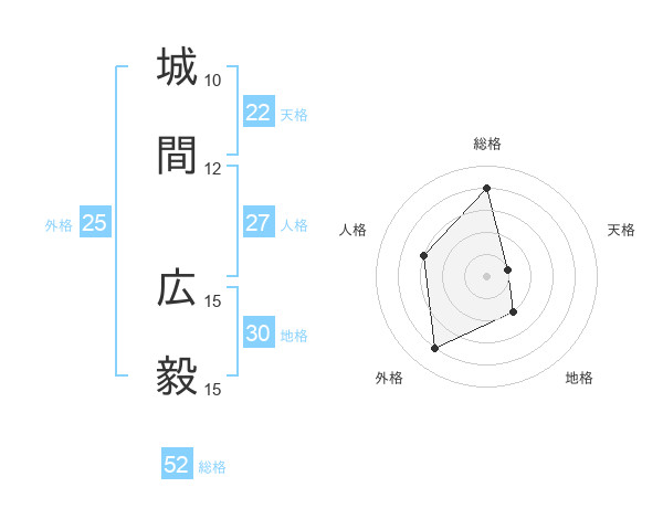 城間 広毅さんの総格は52画の4点!