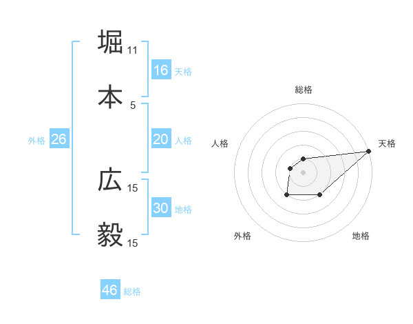 堀本 広毅さんの天格は16画の5点!