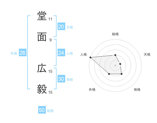 堂面 広毅さんの総格は50画の2点!