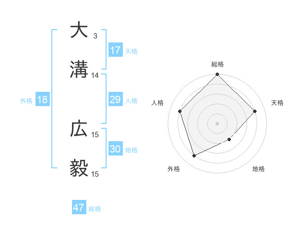 大溝 広毅さんを姓名の画数から五運を鑑定
