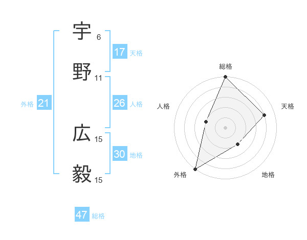 宇野 広毅さんを姓名の画数から五運を鑑定