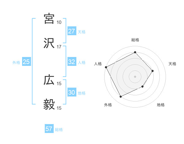 宮沢 広毅さんを姓名の画数から五運を鑑定