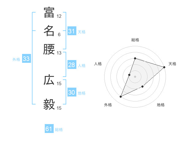 富名腰 広毅さんの総格は61画の3点!