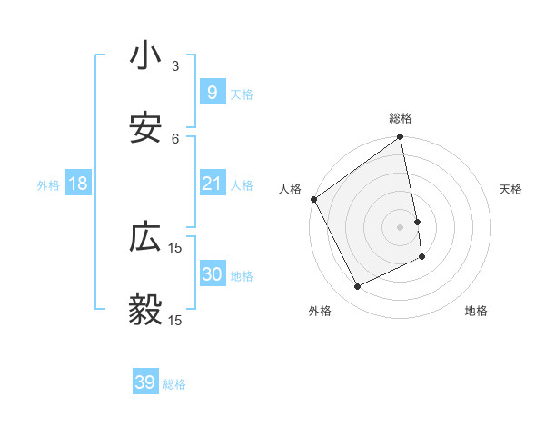 小安 広毅さんの総格は39画の5点!