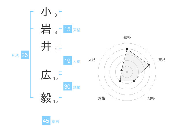 小岩井 広毅さんの総格は45画の4点!