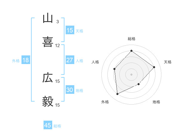 山喜 広毅さんを姓名の画数から五運を鑑定