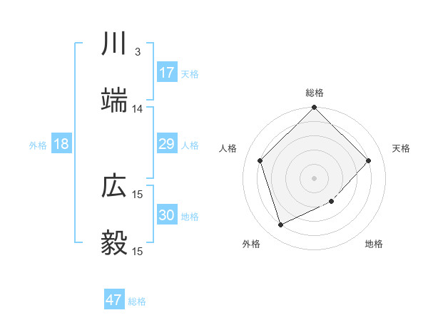 川端 広毅さんの総格は47画の5点!