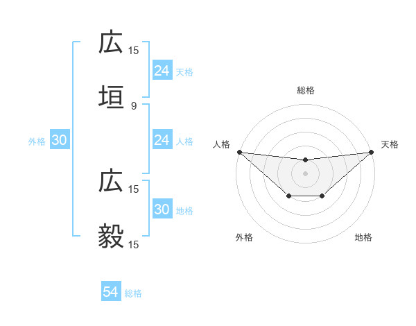 広垣 広毅さんを姓名の画数から五運を鑑定