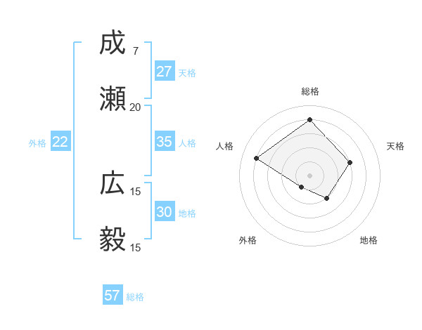 成瀬 広毅さんを姓名の画数から五運を鑑定