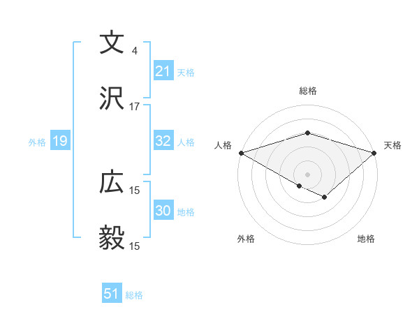 文沢 広毅さんの総格は51画の3点!
