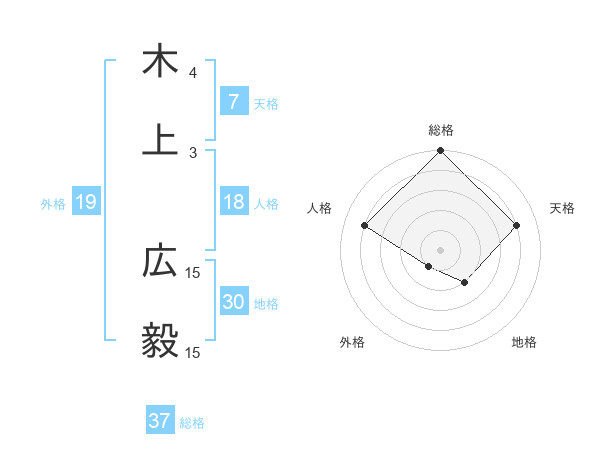 木上 広毅さんの総格は37画の5点!
