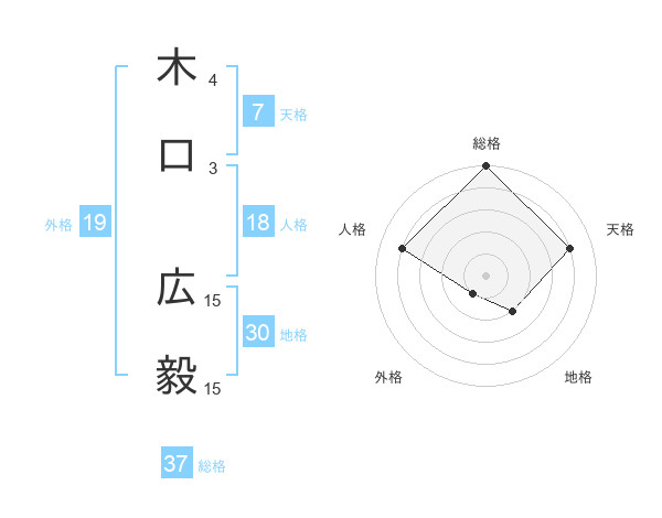木口 広毅さんの総格は37画の5点!