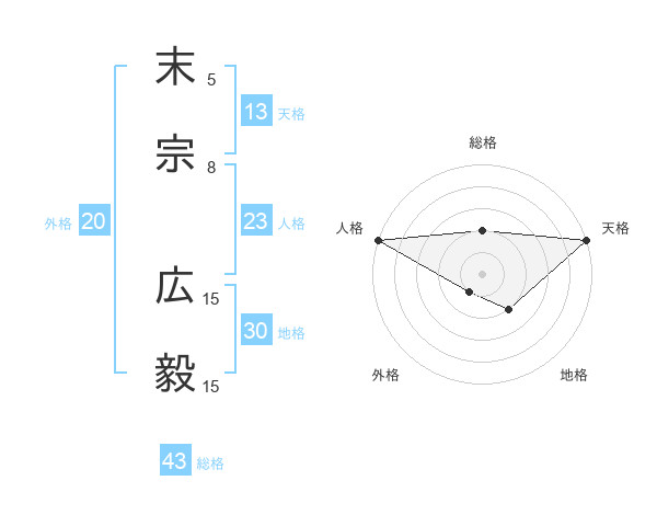 末宗 広毅さんを姓名の画数から五運を鑑定
