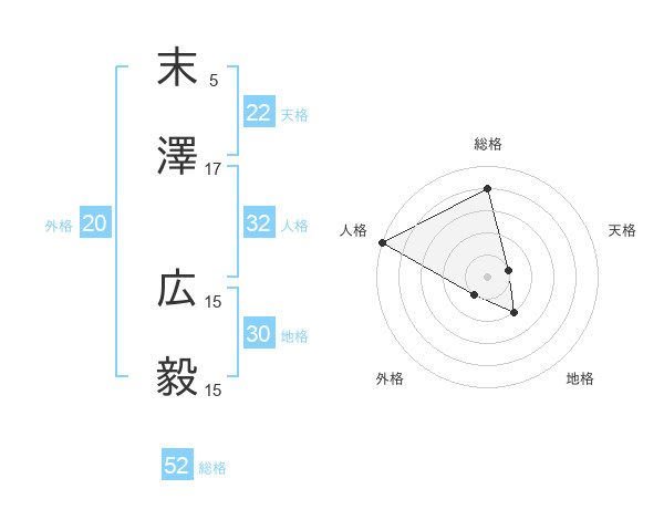 末澤 広毅さんの総格は52画の4点!
