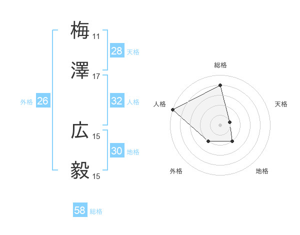梅澤 広毅さんの総格は58画の4点!
