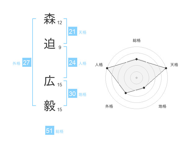 森迫 広毅さんの総格は51画の3点!