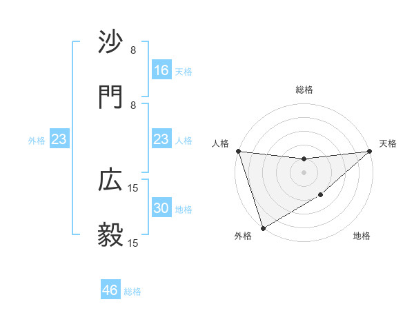 沙門 広毅さんの外格は23画の5点!