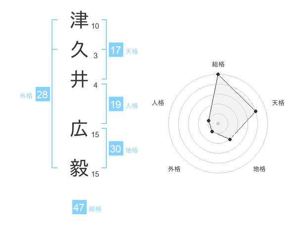 津久井 広毅さんの総格は47画の5点!