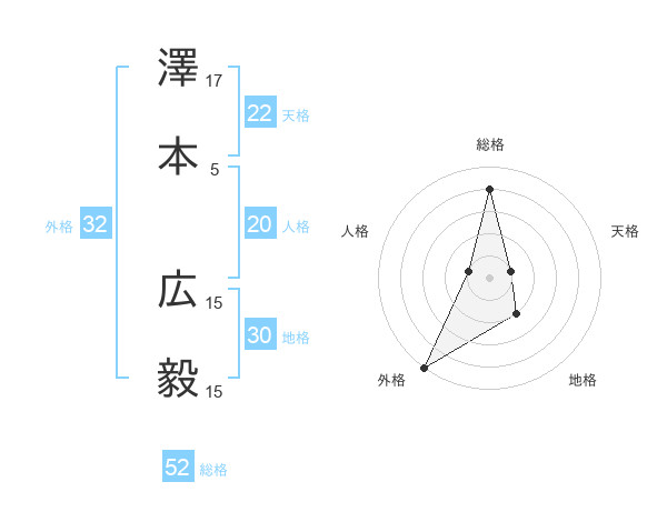 澤本 広毅さんを姓名の画数から五運を鑑定