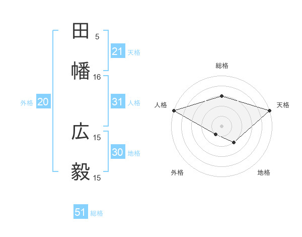 田幡 広毅さんの総格は51画の3点!
