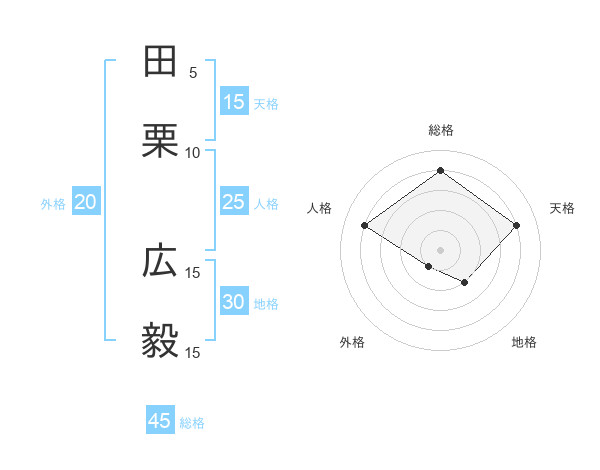 田栗 広毅さんの総格は45画の4点!