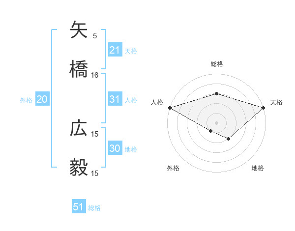 矢橋 広毅さんの総格は51画の3点!