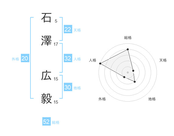 石澤 広毅さんを姓名の画数から五運を鑑定