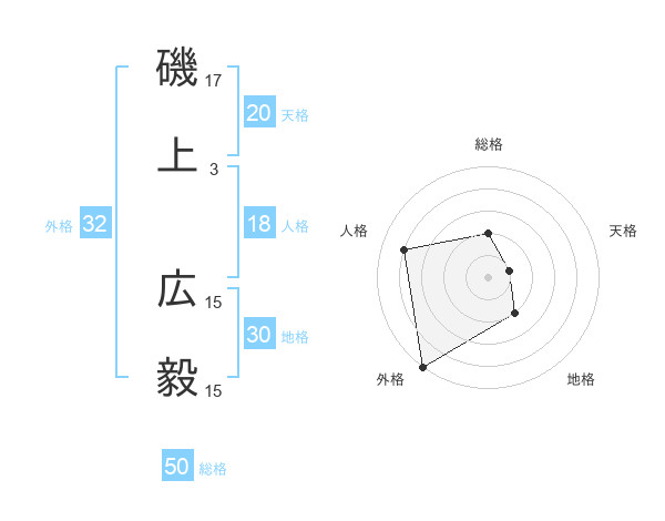 磯上 広毅さんを姓名の画数から五運を鑑定