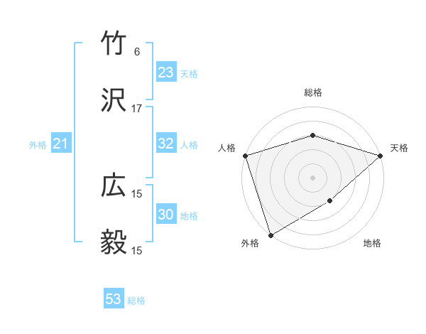 竹沢 広毅さんの天格は23画の5点!