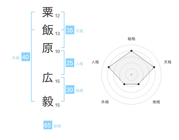 粟飯原 広毅さんを姓名の画数から五運を鑑定