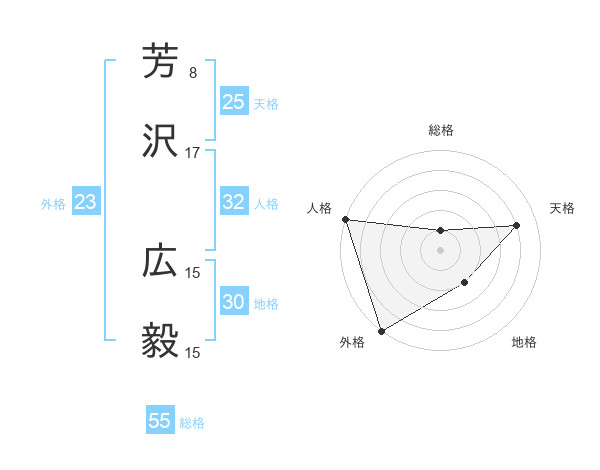 芳沢 広毅さんを姓名の画数から五運を鑑定