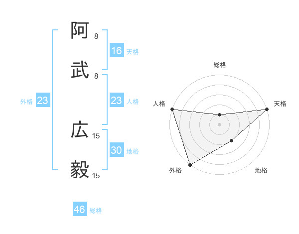 阿武 広毅さんを姓名の画数から五運を鑑定